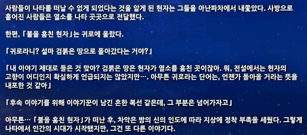 신들이 정상화시킨 나타에서 현자의 자리는 없어졌고 내심 약하다해서 얕본 인간들에게 뒤통수 제대로 맞은 용현자는 미래를 기약하며 떠남.