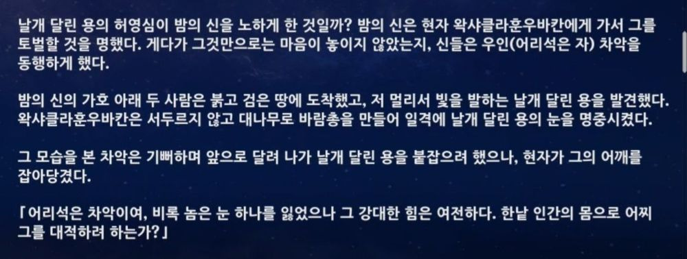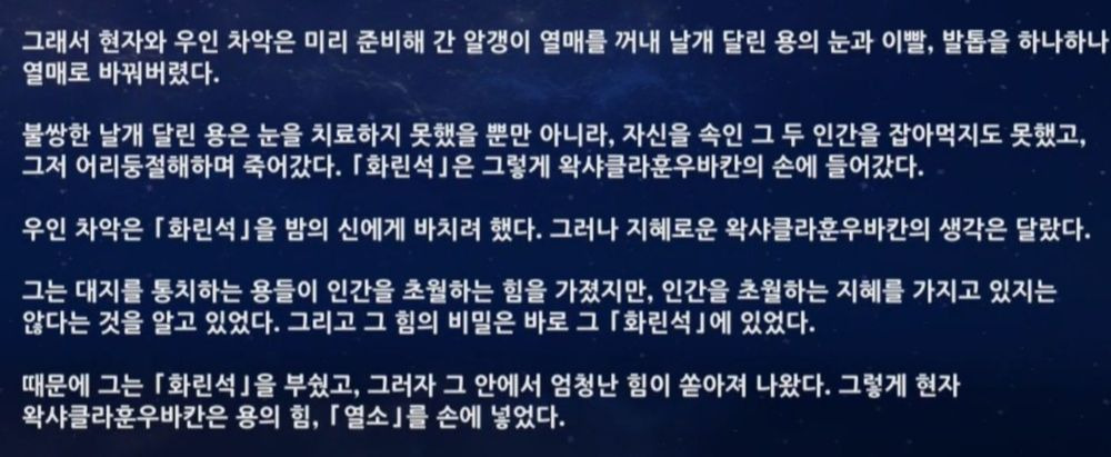 개인적으론 훗날 오치칸이 용들을 멸종시키려할때 나타의 여섯 부족중 상당수가 용을 죽이는것에 반대하는것도 일종의 설붕이 아닌가함. 불과 몇년전까지 인간을 핍박한 용들을 이악물고 어째서 보호하려한건지..