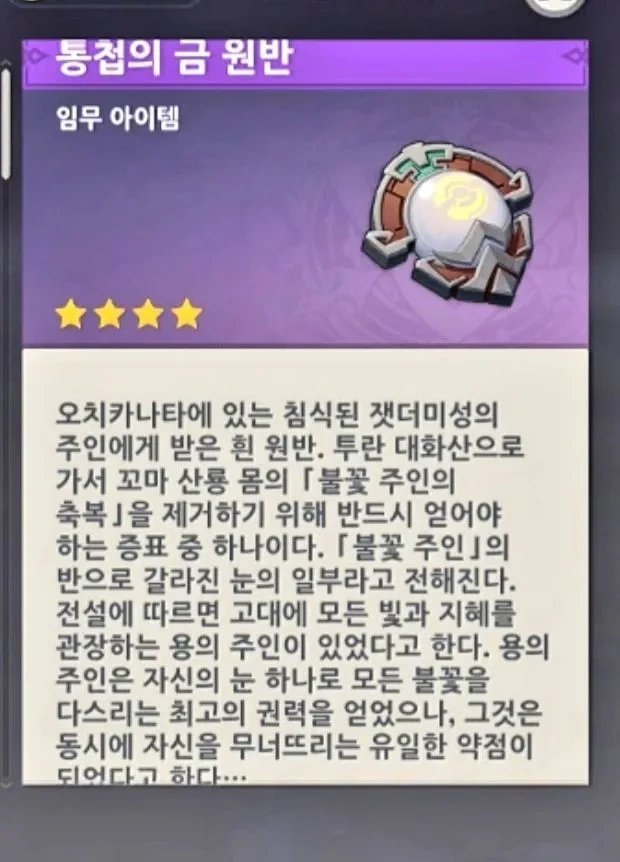 통첩의 금 원반은 불꽃주인의 눈이자 불용왕의 권능 그자체임.