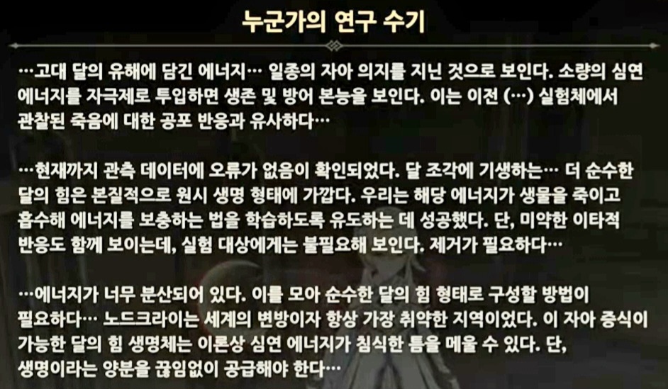 이는 심연 또한 마찬가지로, ‘레리르’가 달의 힘을 흡수하여 심연힘에 동화시켰던 사례로 미루어볼 때 매우 의미심장한 대목입니다.